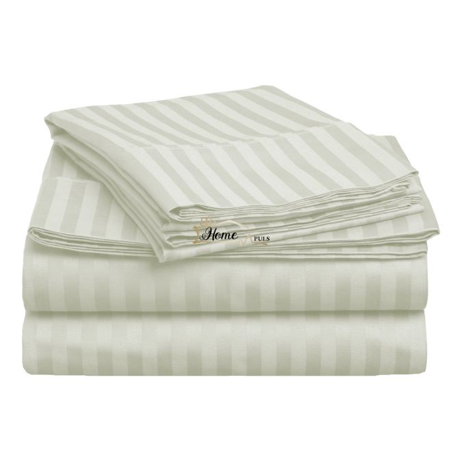 Cearsaf de pat 2 persoane king size Damasc Bumbac 100% tip Hotel cu dunga 1 cm, 240x260 cm, Crem Deschis