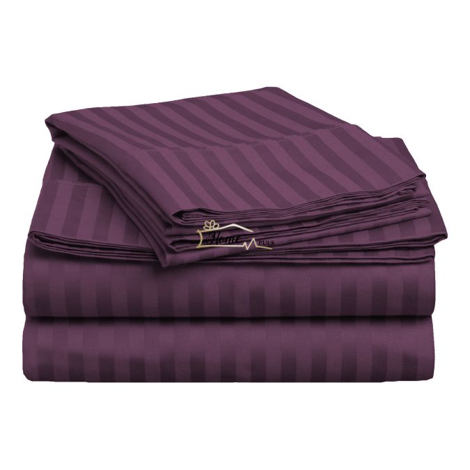 Cearsaf de pat 2 persoane Damasc Bumbac 100% tip Hotel cu dunga 1 cm, 220x240 cm, Mov