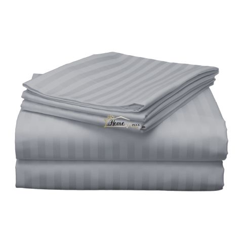 Cearsaf de pat 2 persoane Damasc Policoton dunga 1 cm, 220 x 230 cm, Gri Deschis