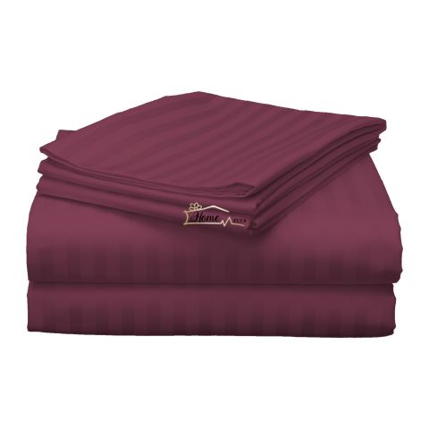 Cearsaf de pat o persoana Damasc Policoton dunga 1 cm, 160 x 230 cm, Rosu Visiniu