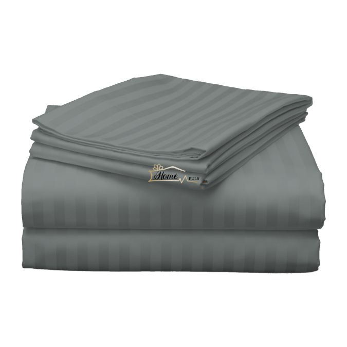 Cearsaf de pat 2 persoane Damasc Policoton dunga 1 cm, 220 x 230 cm, Gri Inchis