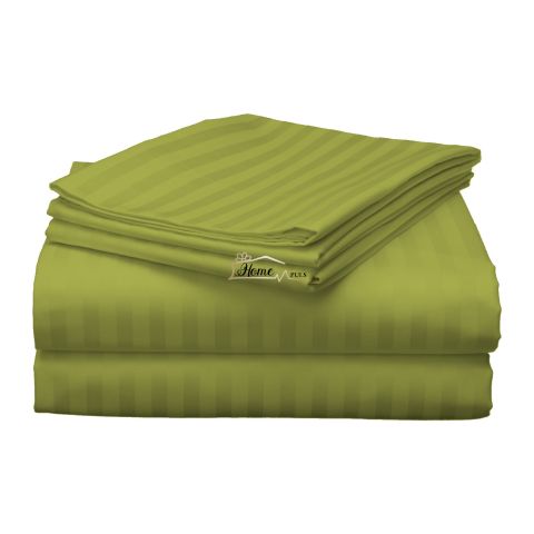 Cearsaf de pat 2 persoane Damasc Policoton dunga 1 cm, 220 x 230 cm, Verde Olive