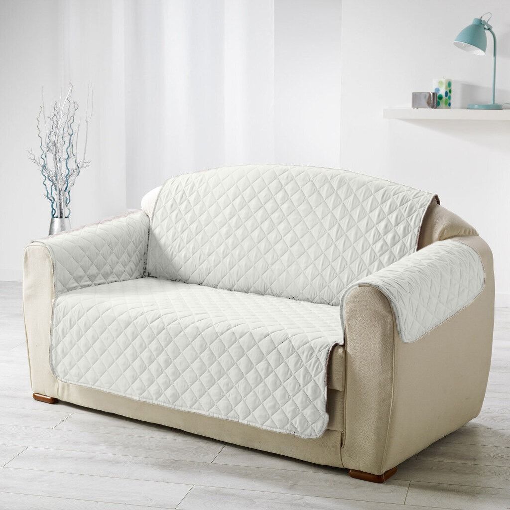 Husa canapea 2 locuri tip cuvertura matlasata 130x205 cm cu laterale, reversibila, Alb