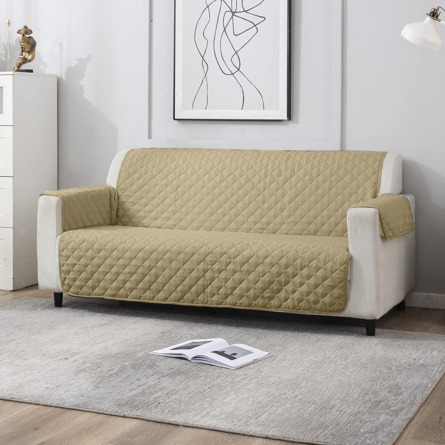Husa canapea 3 locuri tip cuvertura matlasata 190x177 cm cu laterale, reversibila, Cappuccino