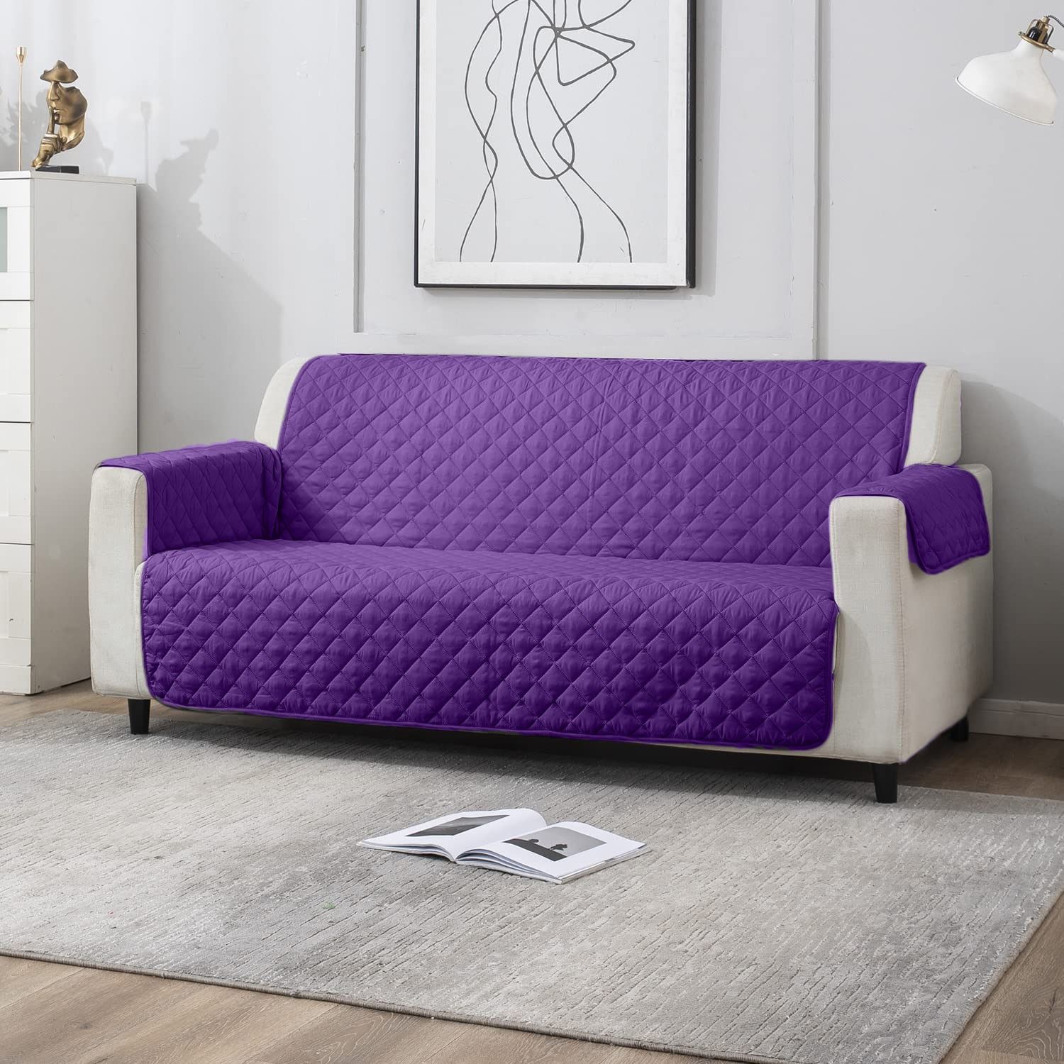 Husa canapea 3 locuri tip cuvertura matlasata 190x177 cm cu laterale, reversibila, Mov