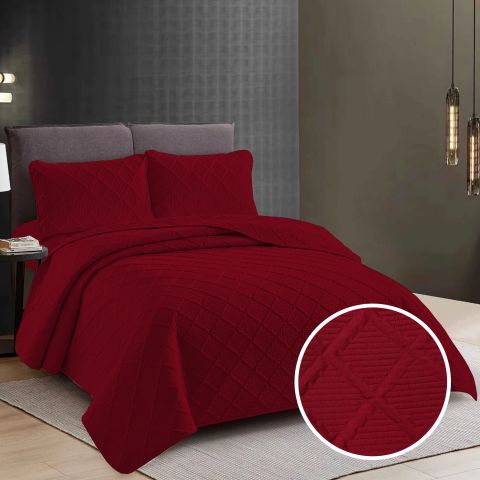 Cuvertura matlasata pat UNI 230x250 cm cu 2 fete perne 50x70 cm, model romb, Rosu