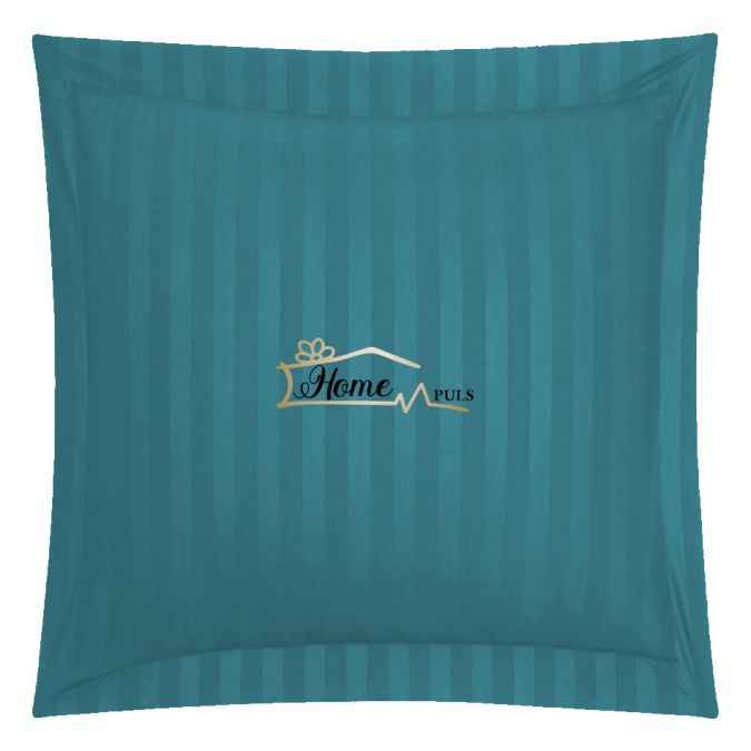 Fata de perna Damasc Bumbac 100% dunga 1 cm, 70 x 70 cm si tiv cu bordura 3,5 cm, Turcoaz