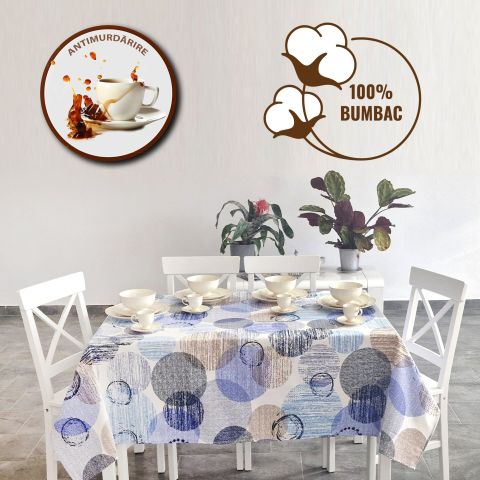 Fata de masa antimurdarire 100% Bumbac 160x240 cm, Cercuri colorate Albastru