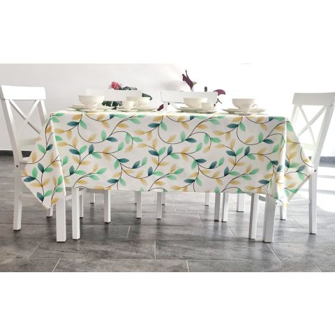 Față de masă rotundă 180 cm antimurdărire, Frunze Verde Galben, Ralex Pucioasa
