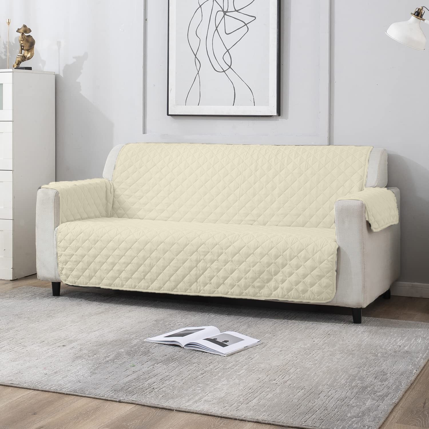 Husa canapea 3 locuri tip cuvertura matlasata 190x177 cm cu laterale, reversibila, Alb Unt