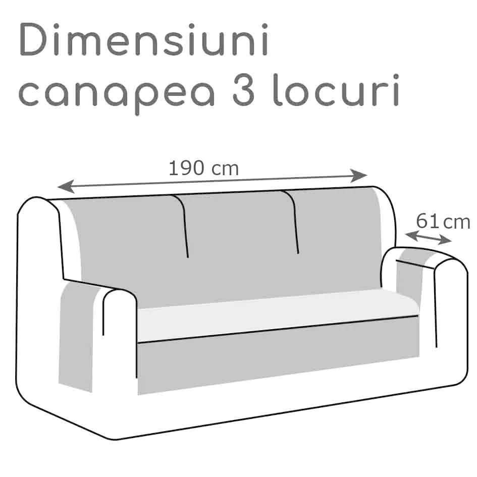- Husa canapea 3 locuri tip cuvertura matlasata 190x177 cm cu laterale, reversibila, Alb UntPreț Promo 65,00 Lei Preț listă 98,00 Lei