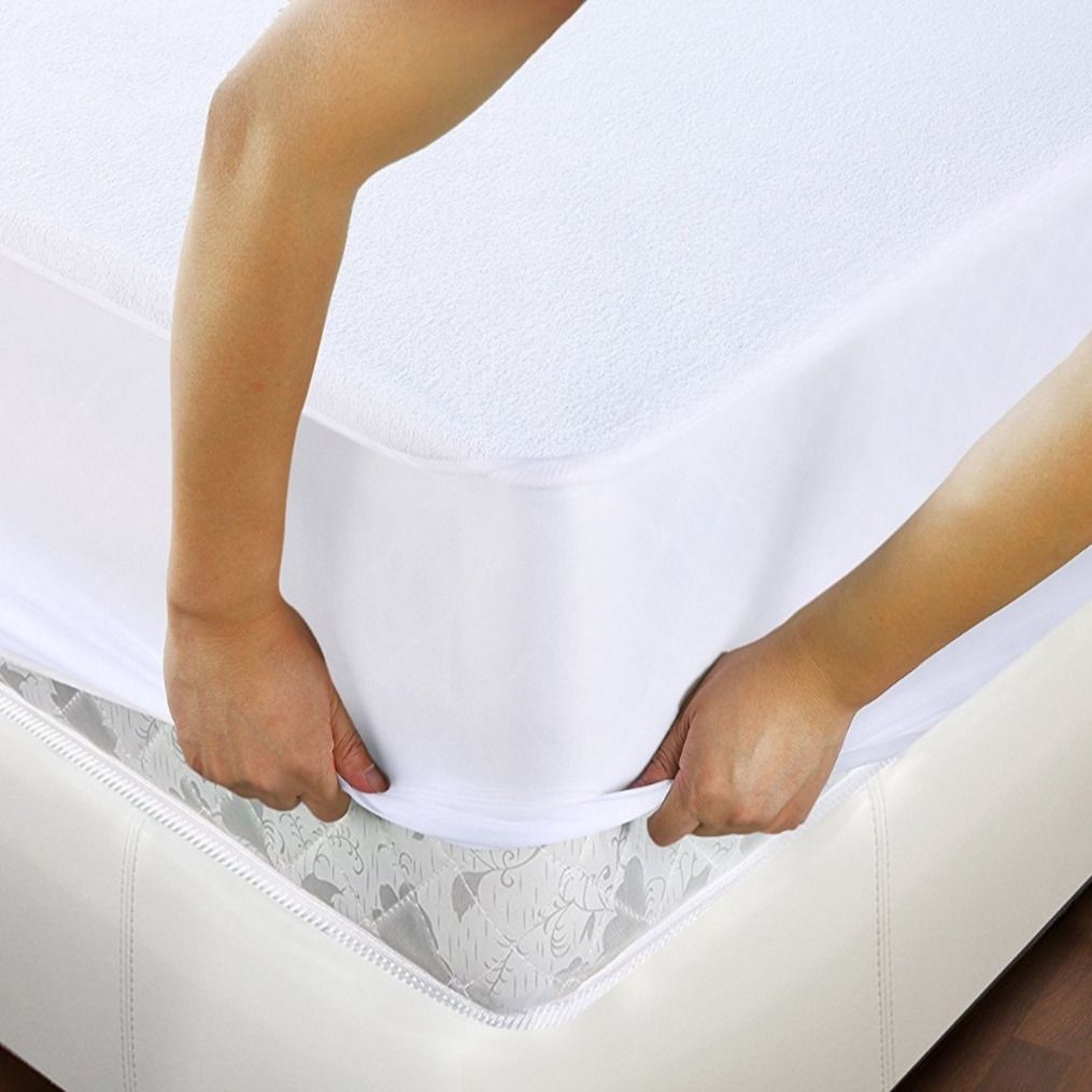 Husă protecție pat frotir bumbac 100% impermeabilă pentru saltea de 160x200 cm Alb