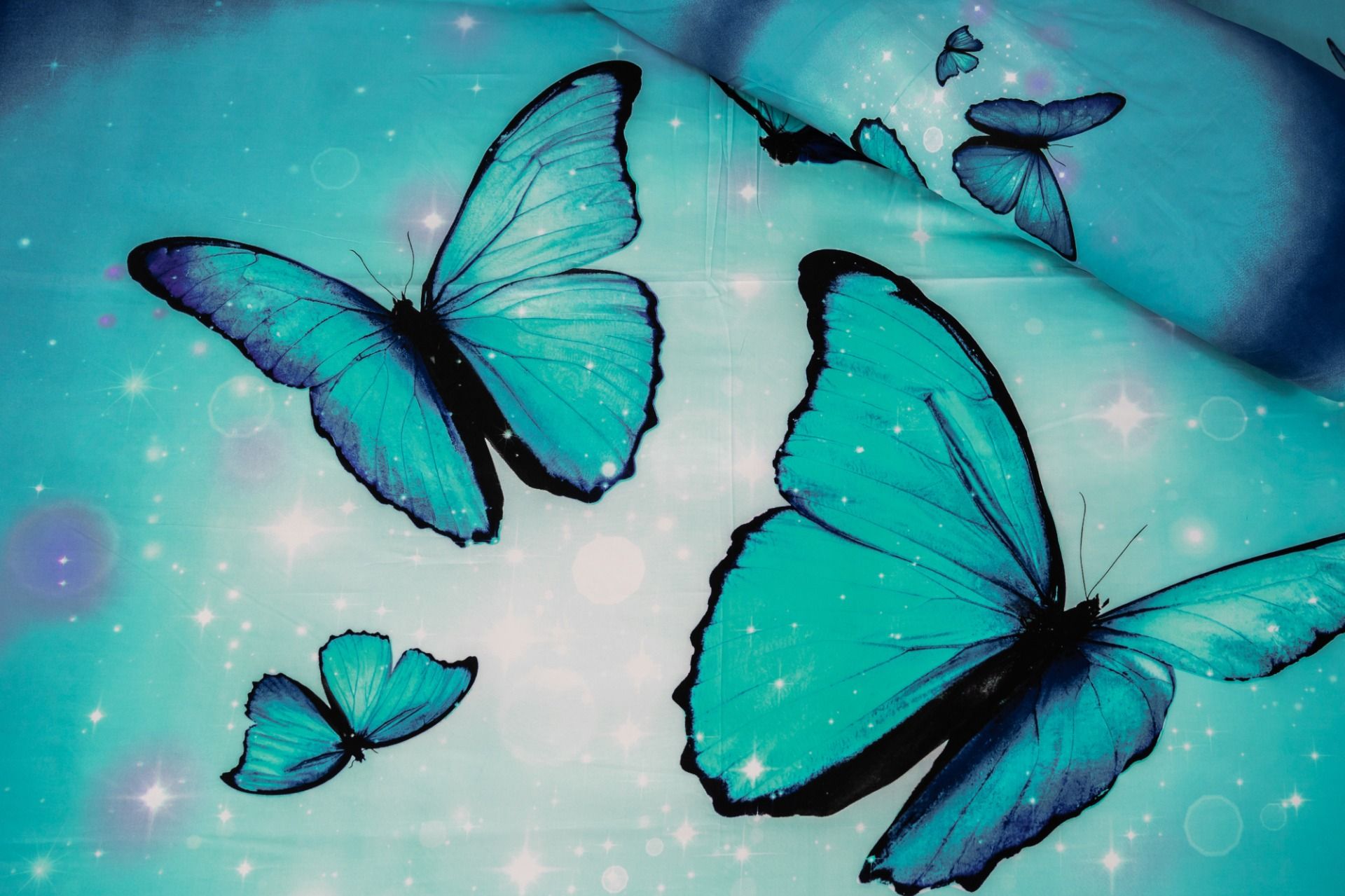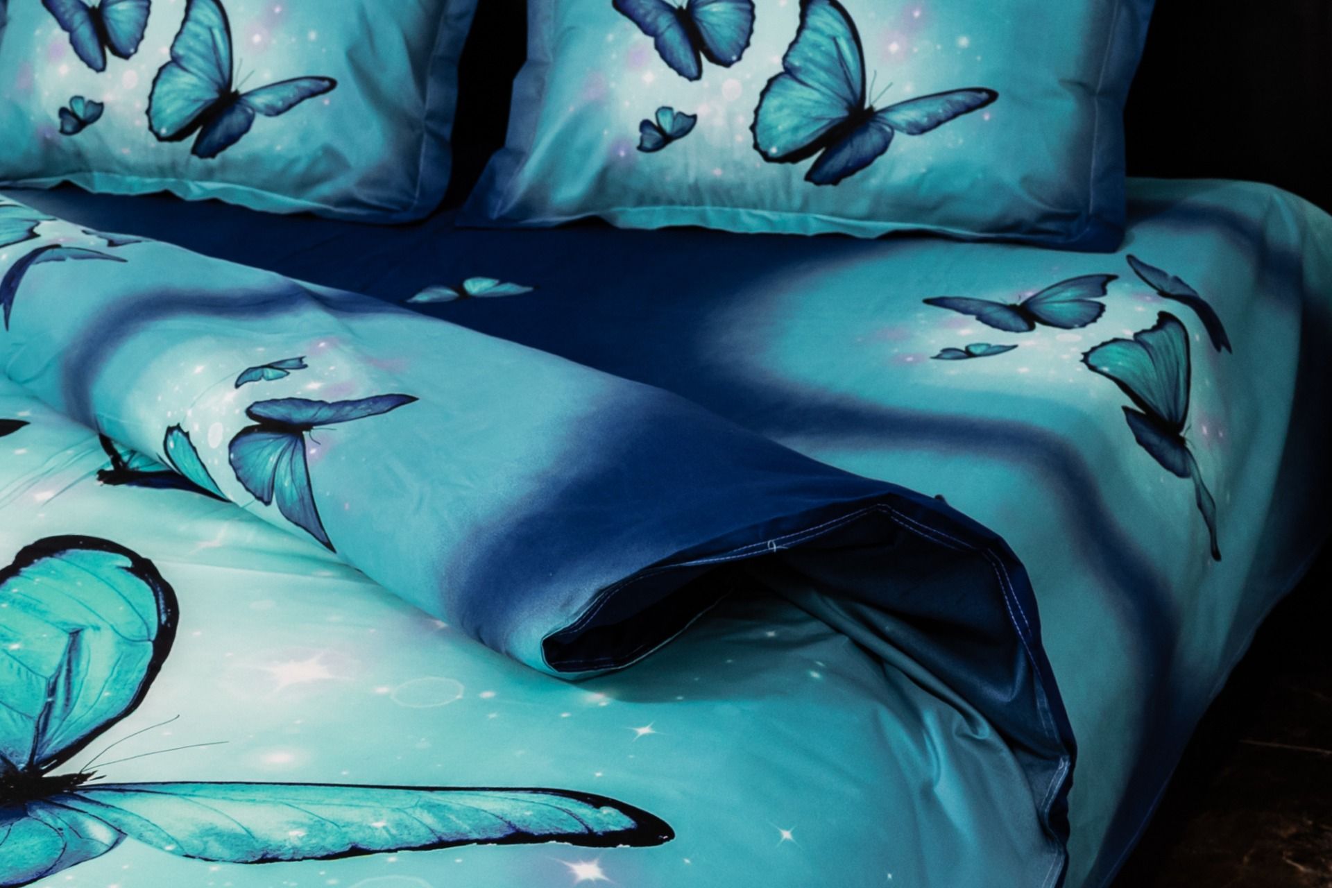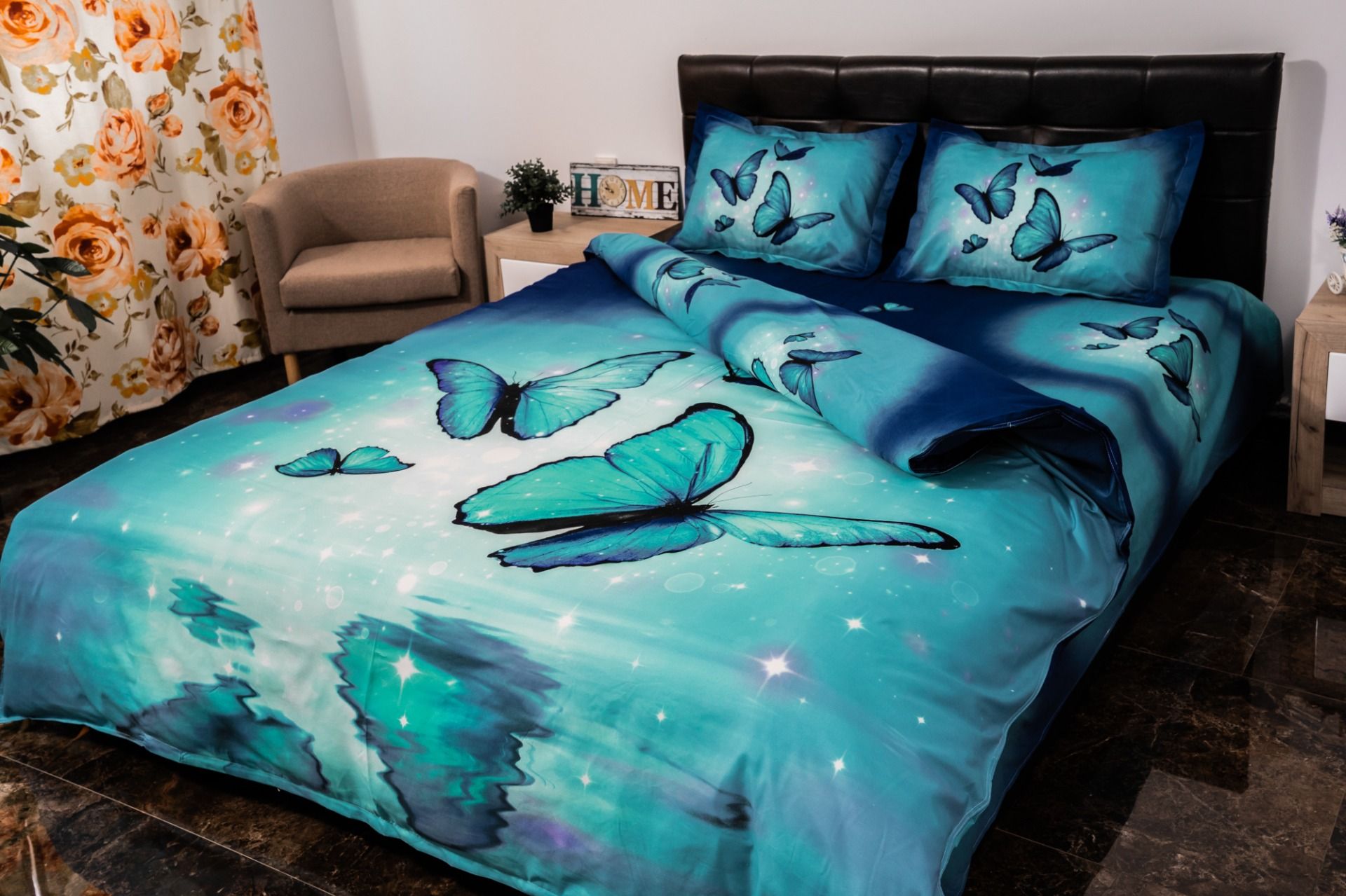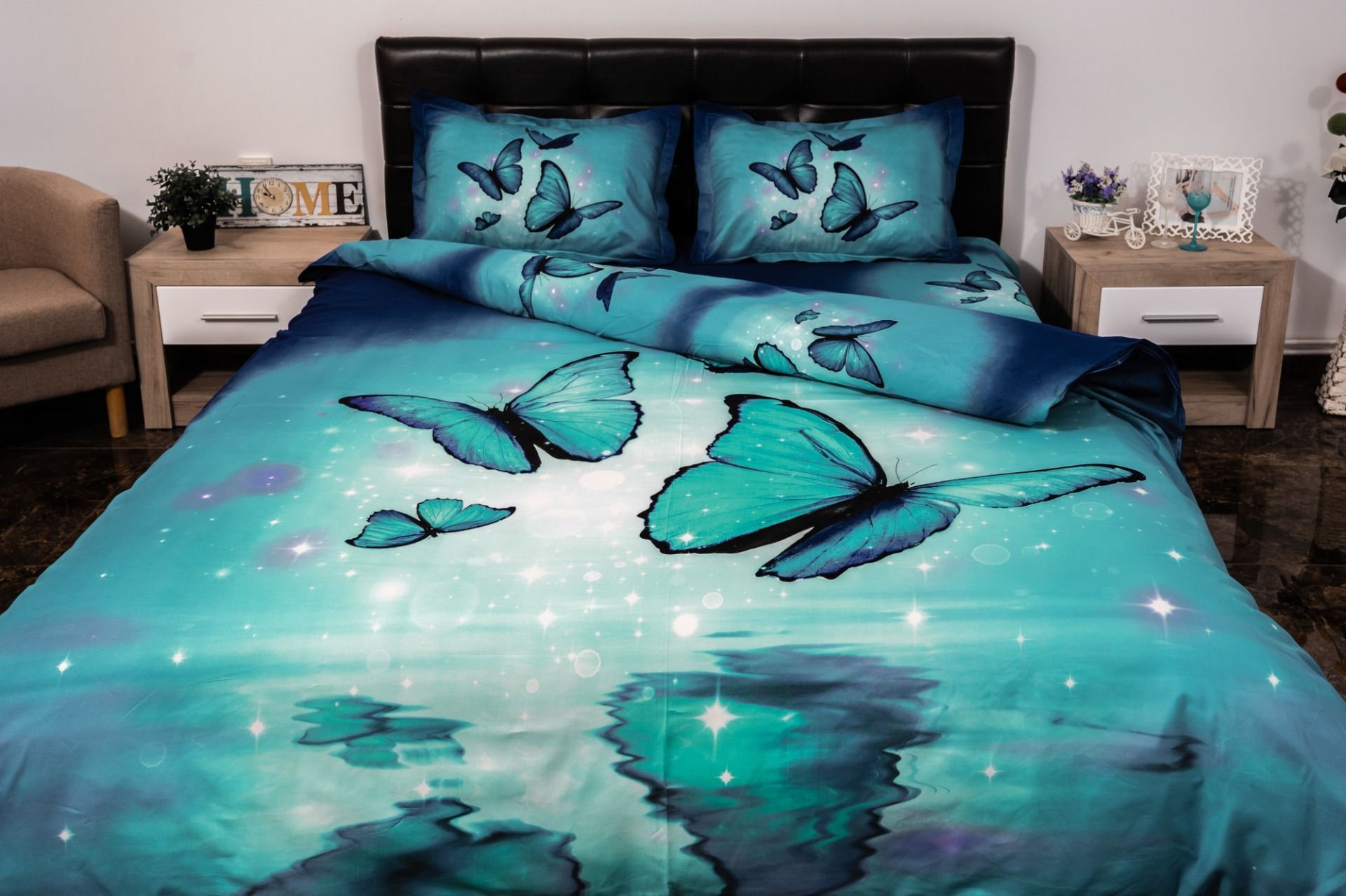Lenjerie de pat dublu 4 piese 220 x 230 cm Digital Print 3D, Albastru Fluturasi Pucioasa