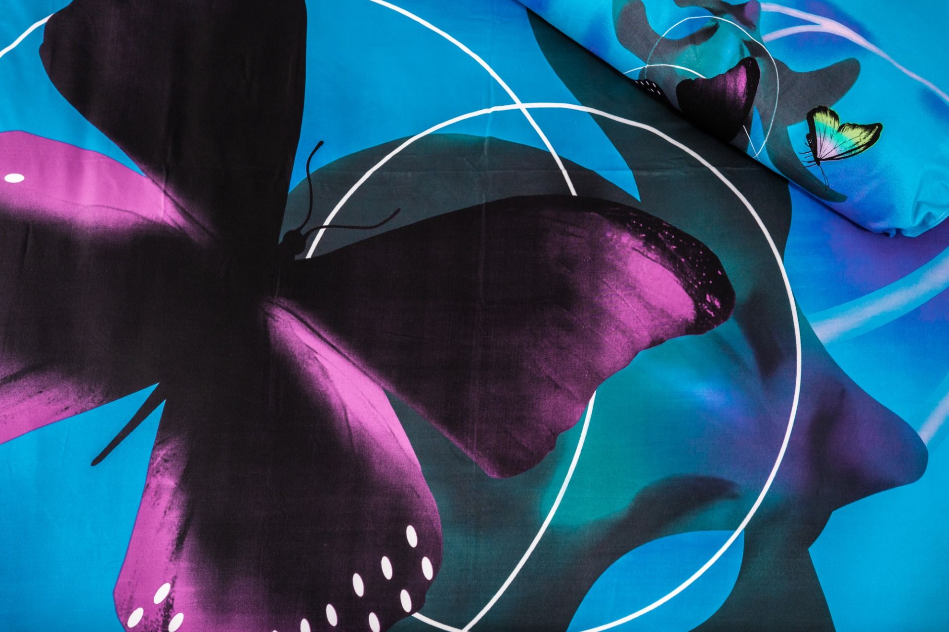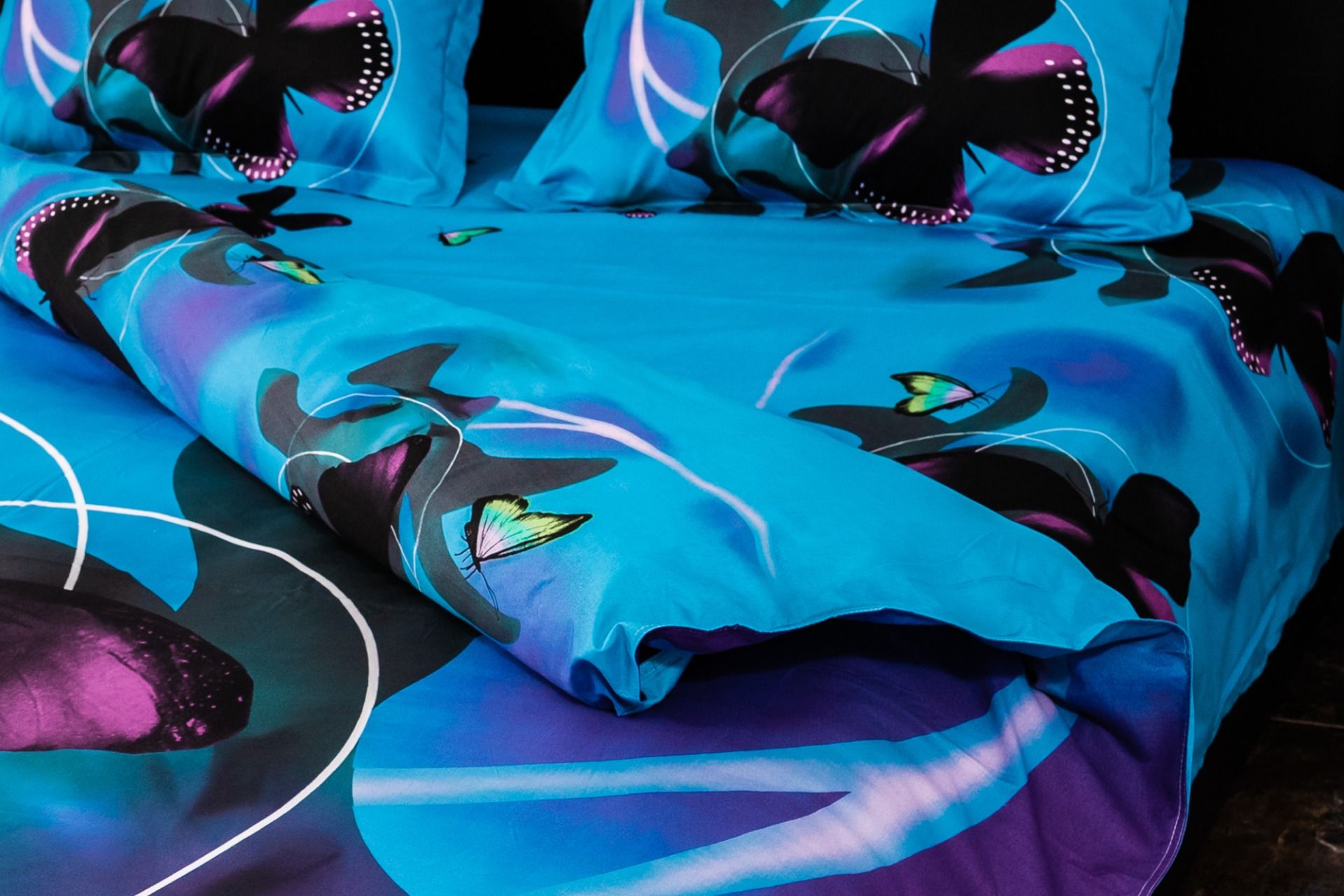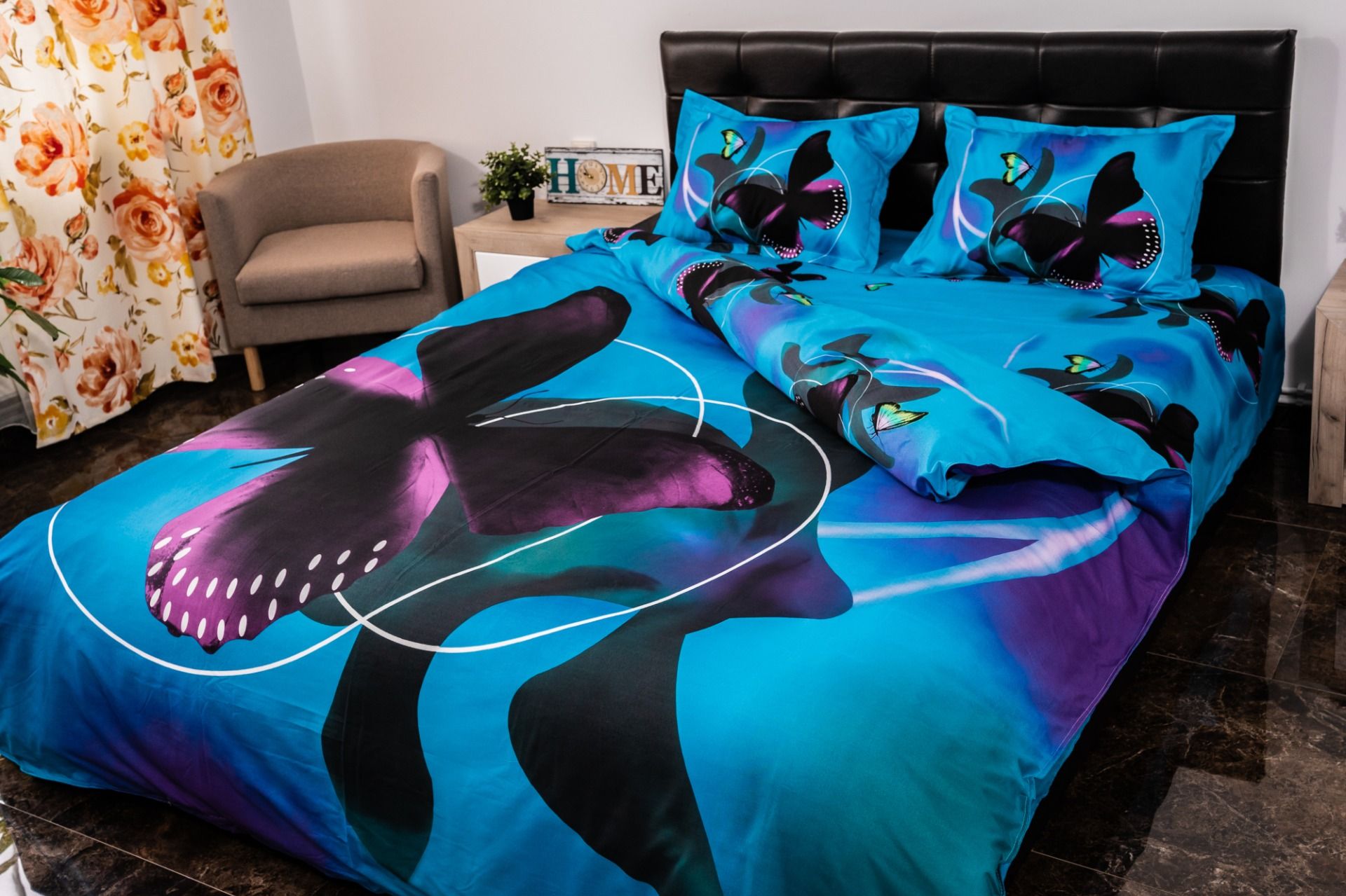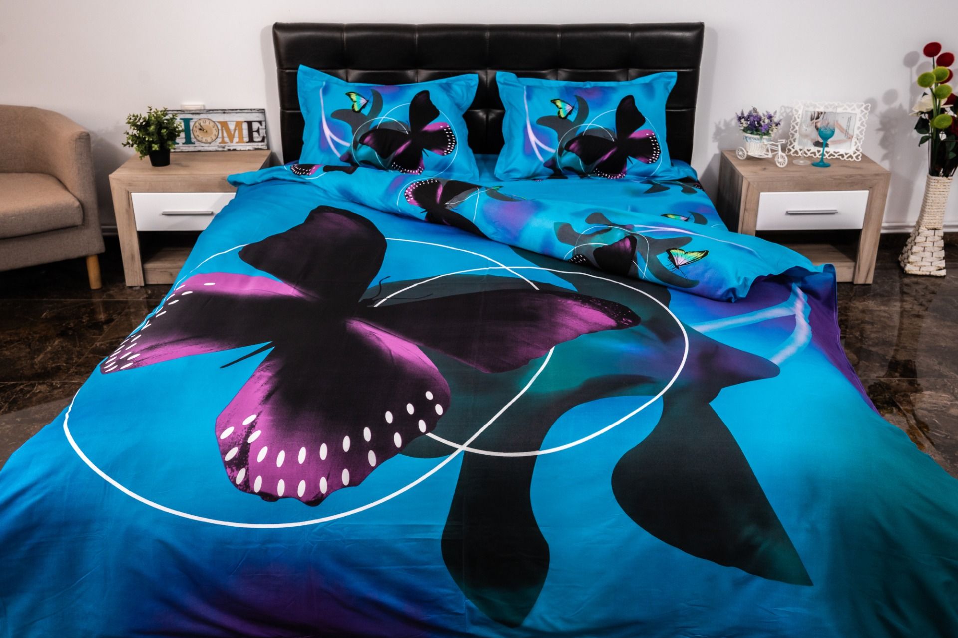 Lenjerie de pat dublu 4 piese 220 x 230 cm Digital Print 3D, Albastru/Negru Fluturas Pucioasa