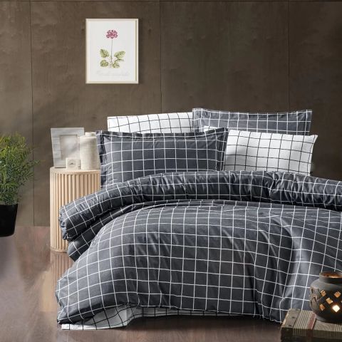 Lenjerie pat Bumbac Ranforce 4 piese cearsaf pat 240x260 cm, pilota 200x220 cm, 2 fete perne 50x70 cm, Alb / Negru, Pucioasa RNFN42