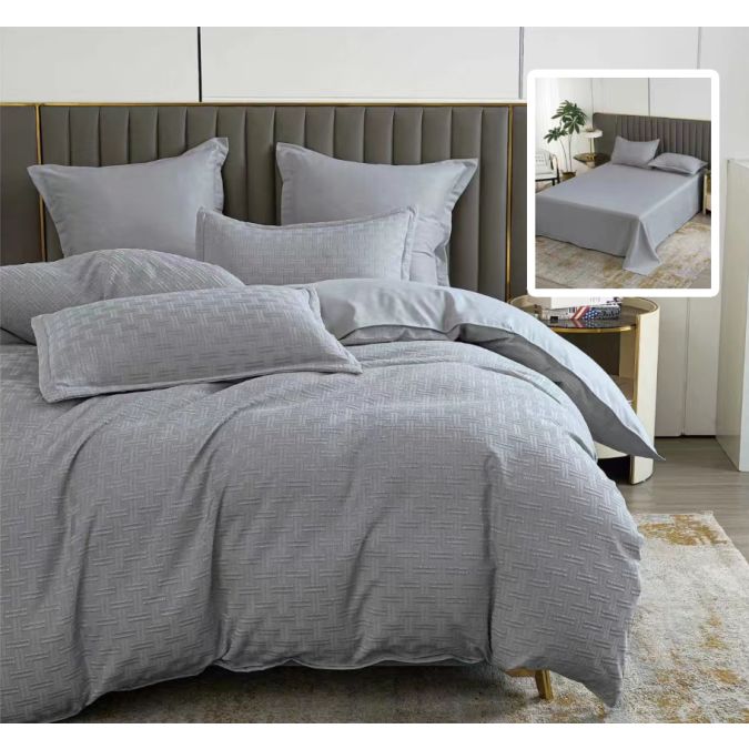 Lenjerie de pat dublu Finet Natur UNI Stripe 6 piese cearsaf pat 230x250 cm, pilota 200x230 cm, 2 fete perna 50x70 si 70x70 cm, Gri, Pucioasa