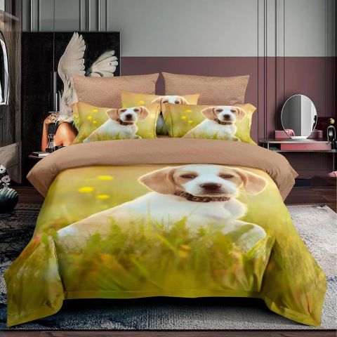 Lenjerie de pat 1 persoana bumbac Finet 3D 3 piese 160 x 230 cm, Catelus in iarba, Bej, Pucioasa F1P6