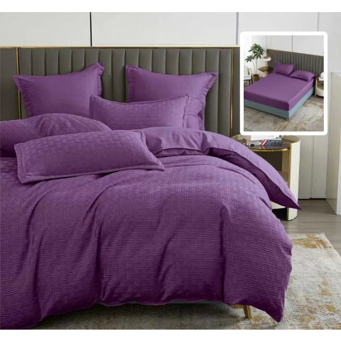 Lenjerie de pat Finet Natur UNI Stripe 6 piese husa saltea 160/180x200 cm, pilota 200x230 cm, 2 fete perna 50x70 si 70x70 cm, Mov, Pucioasa