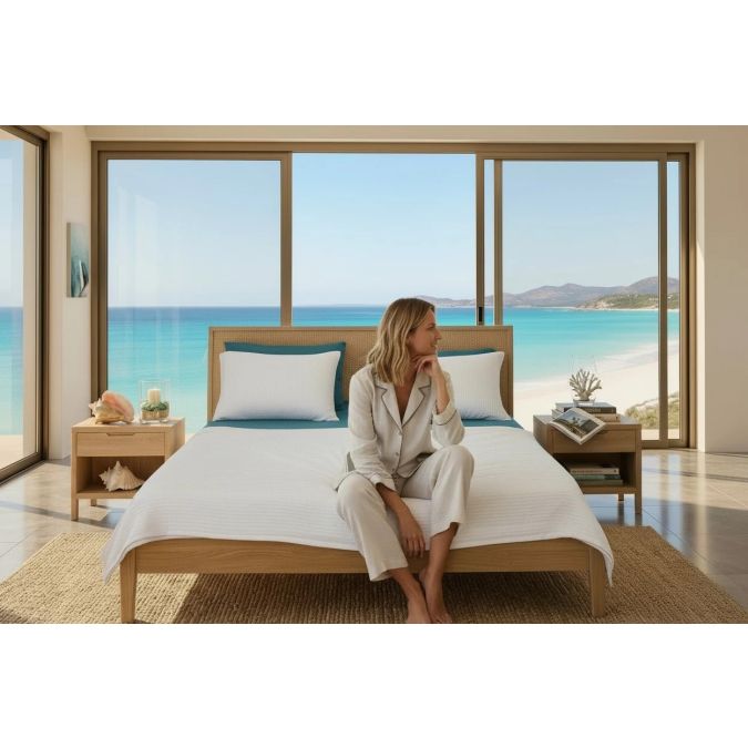 Spre deosebire de lenjeriile standard, acest set înlocuiește clasica învelitoare de pilotă cu un Pled Pike (fagure) . Acesta este ideal pentru sezonul estetic deoarece permite pielii să respire, absoarbe umiditatea și oferă o greutate optimă pentru a te simți protejat, fără a reține căldura excesivă.