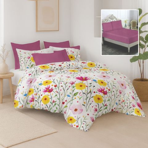 Lenjerie pat bumbac Finet 6 piese PROMO cu husă saltea 160x200 sau 180x200 cm, pilotă 200x220 cm, 2 fețe pernă 50x70 și 70x70 cm, Mov, Pucioasa