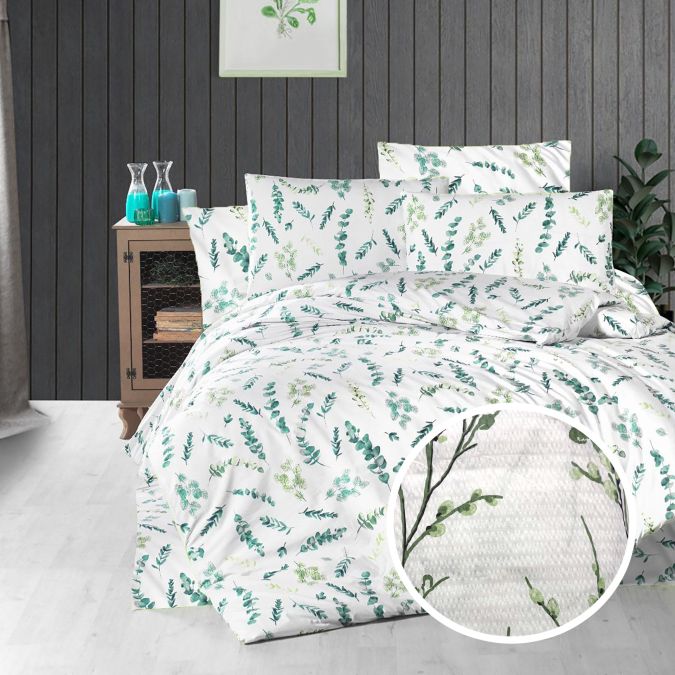 Lenjerie pat Ranforce Cotton Pro Bumbac 100%, King Size, 4 piese Flori Alb/Verde RCP46Preț Promo 224,00 Lei Preț listă 335,00 Lei -