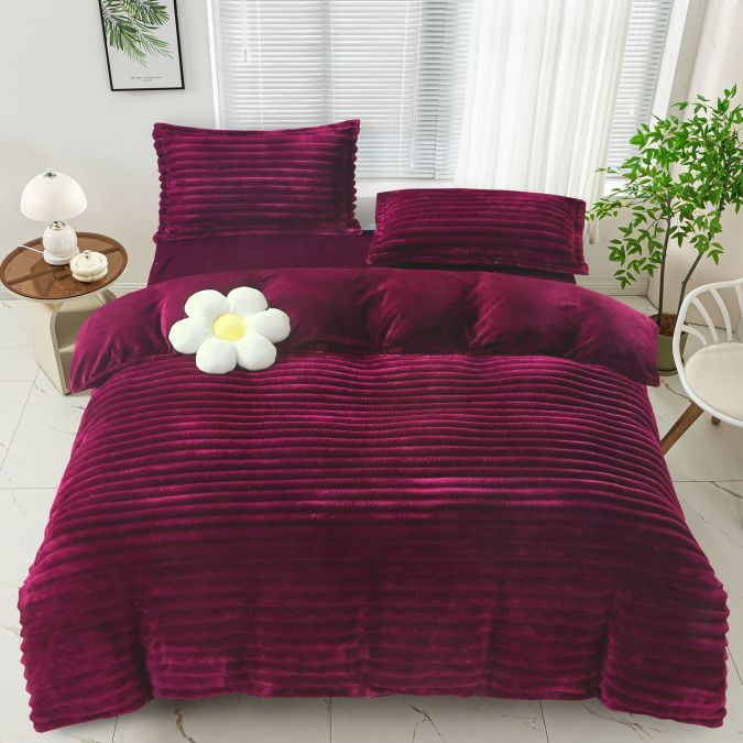 Lenjerie pat dublu Cocolino Line 4 piese, cearsaf pat 230x250 cm, pilota 200x230 cm, 2 fete perna 50x70, Rosu Grena, Ralex Pucioasa