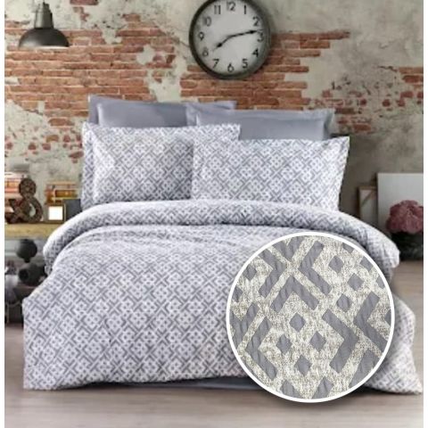Lenjerie pat dublu Creponata 100% Bumbac, cearsaf pat 200x230 cm, pilota 180x215 cm, 2 fete perna 50x70 cm, Gri Deschis, Pucioasa CREP68