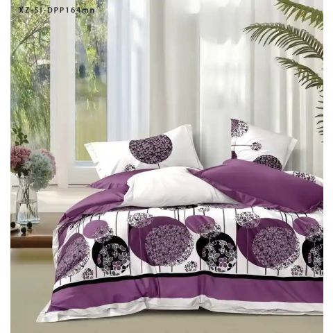 Lenjerie pat dublu Finet Bumbac 6 piese cu husa saltea 160x200 sau 180x200 cm, pilota 200x230 cm, 2 fete perna 50x70 si 70x70 cm, Mov/Negru, Pucioasa
