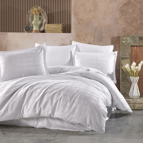 Lenjerie pat dublu Jacquard 100% Bumbac 6 piese, cearsaf pat 240x260 cm, pilota 200x220 cm, 2 fete perne 50x70 si 70x70 cm, Clasy, Alb MARSELA V1