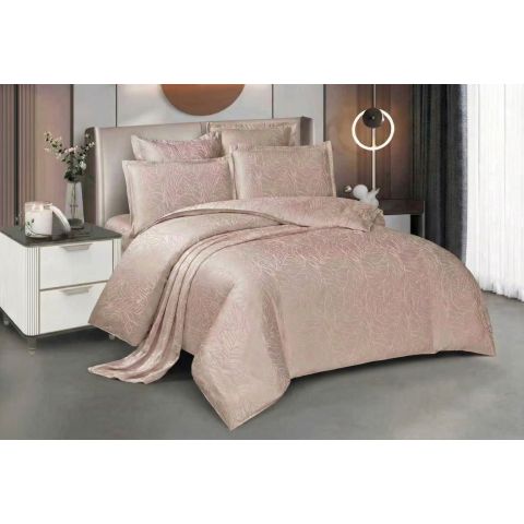 Lenjerie pat dublu Jacquard Satin 6 piese, cearsaf pat 220x240 cm, pilota 200x220 cm, 2 fete perne 50x70 si 70x70 cm JQ6P1