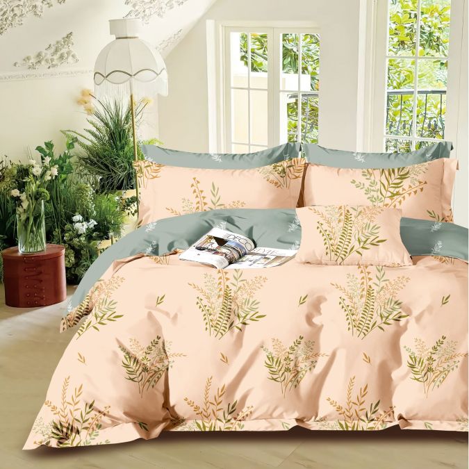 Lenjerie pat dublu Percalle imprimat Bumbac 100%, 4 piese, cearsaf pat 240x260 cm, pilota 200x230 cm, 2 fete perna 50x70 cm, Crengute Bej / Verde, PucioasaPreț Promo 210,00 Lei Preț listă 315,00 Lei