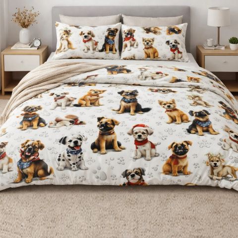 Lenjerie pat Ranforce Cotton Pro Bumbac 100%, King Size cu husa, 4 piese Catelusi Crem/Maro RCP69 Ralex PucioasaPreț Promo 238,00 Lei Preț listă 358,00 Lei