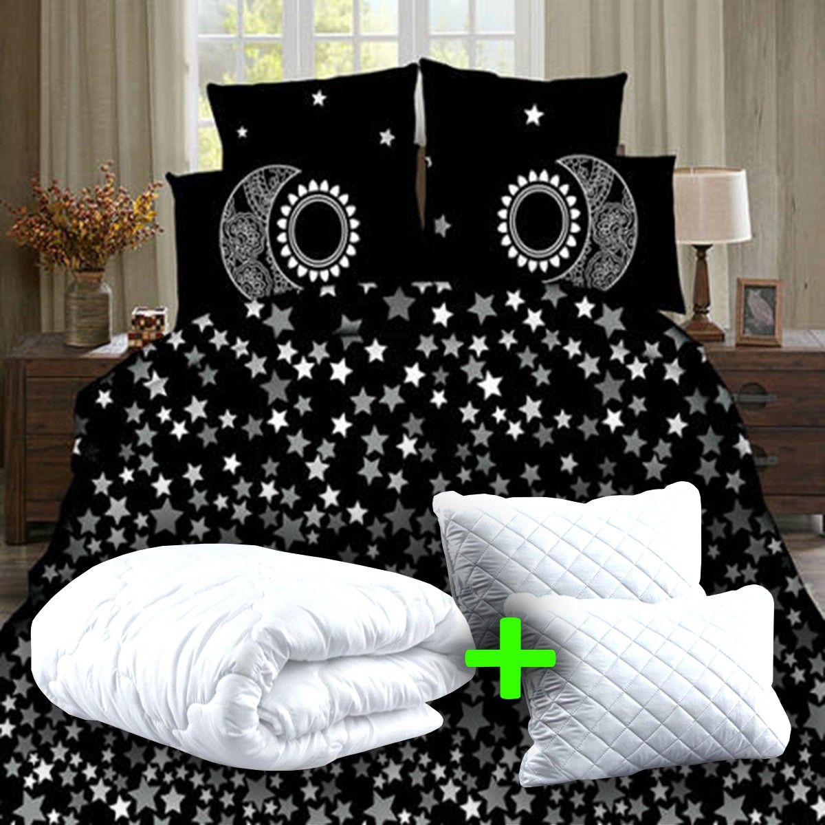 Pachetul promoțional compus din set de lenjerie pat dublu digital print 3D + 2 perne și pilotă poate fi cadoul ideal pentru cei dragi dar și o necesitate în dormitorul tău.