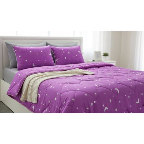 Dă viață dormitorului tău cu această modernă pilotă matlasată umplută cu minet alergenic antiaglomerare cu model Lună și Stele fabricată în România la Pucioasa.