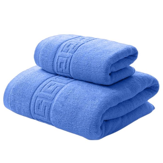 Set 2 prosoape baie corp 70x140 cm si fata 50x90 cm Bumbac 100%, Greek Border 500 grame/mp, Bleu