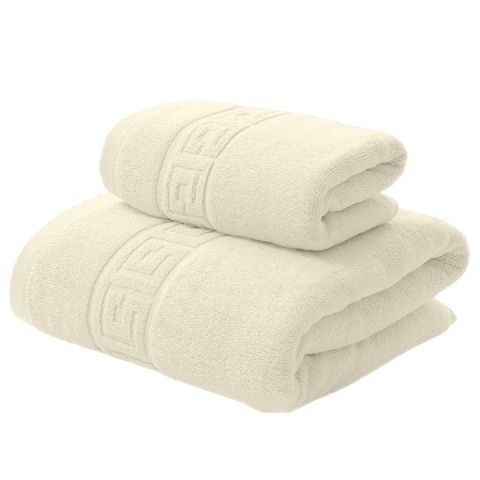 Set 2 prosoape baie corp 70x140 cm si fata 50x90 cm Bumbac 100%, Greek Border 500 grame/mp, Crem